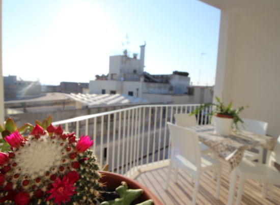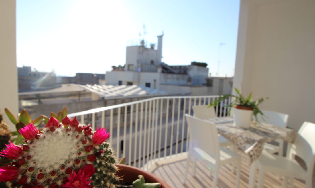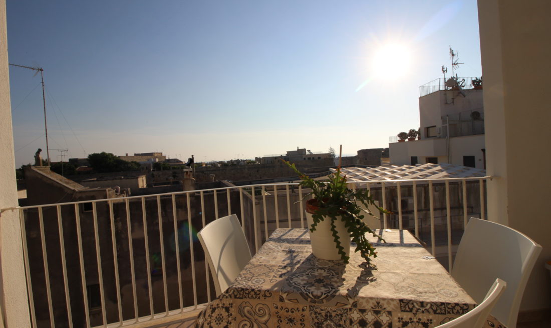 Inoltre la terrazzo, dona un bellissimo sguardo verso il mare e le mura del Castello poco distante, in aggiunta il terrazzo è provvisto di pilozza e lavatrice, con un tavolo quadro con quattro sedie, dove poter fare colazione o cenare guardano il mare, o le navi che passano in lontananza.