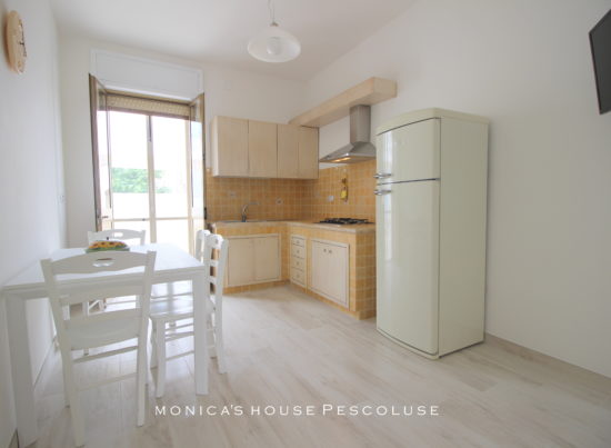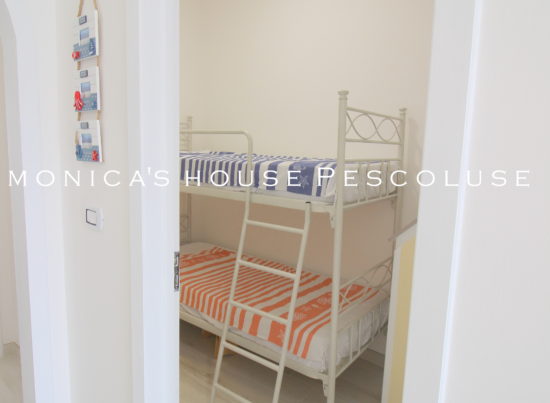 L’appartamento completamente ristrutturato nel 2019, dispone di due camere matrimoniali, una stanza con un letto a castello, bagno con doccia oltre alla lavatrice, cucina in muratura con elettrodomestici nuovi, e fiore all’occhiello un ampio terrazzo sul retro dove gustare delle ottime grigliate in totale privacy.